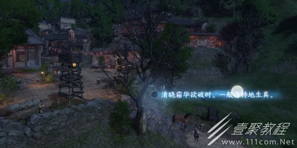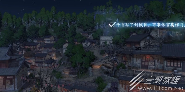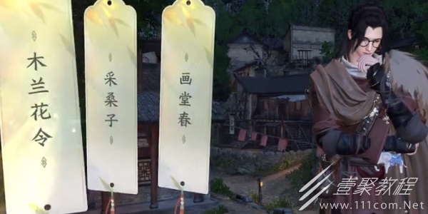 2、进入游戏的作词动画界面我们视野往后延伸以村中的石碑为意象作词(清晓霜华欲破时,一般奇特地生真。)。