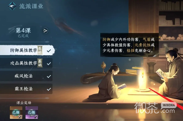 对话完成之后就直接选择上对应的门派课业,然后就开始教学。