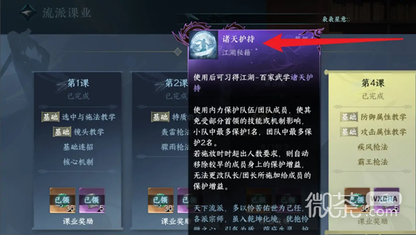 上面所有的课程都是需要玩家来完成的,在全部完成之后就能获取到诸天护持这个技能。