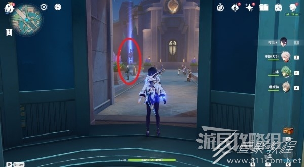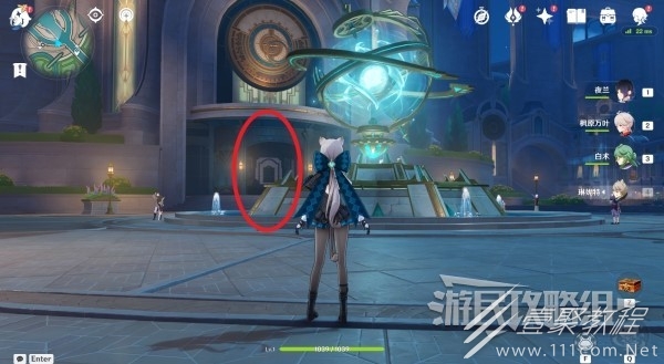 首先前往初次到达枫丹廷的喷泉广场。进入喷泉后方的大门(枫丹廷水道枢纽)。