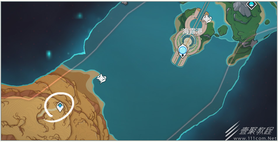 由此出发穿越水域就可以到达海露港附近,开启枫丹的冒险之旅啦~
