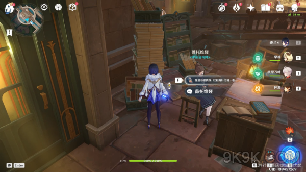2.抵达传送点后,往前面看,能看到一个律法咨询师微托维娅,身后的书堆就是《怪盗与名侦探:虹彩胸针之谜·其一》。