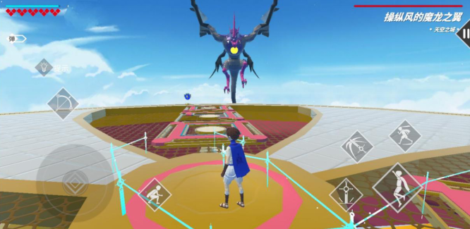 因此玩家需要在躲藏好飞龙的攻击的时候在飞龙面前的平台布置好光剑,然后等平台飞上去后用弓箭或者连接到后面的平台的光剑做引爆。