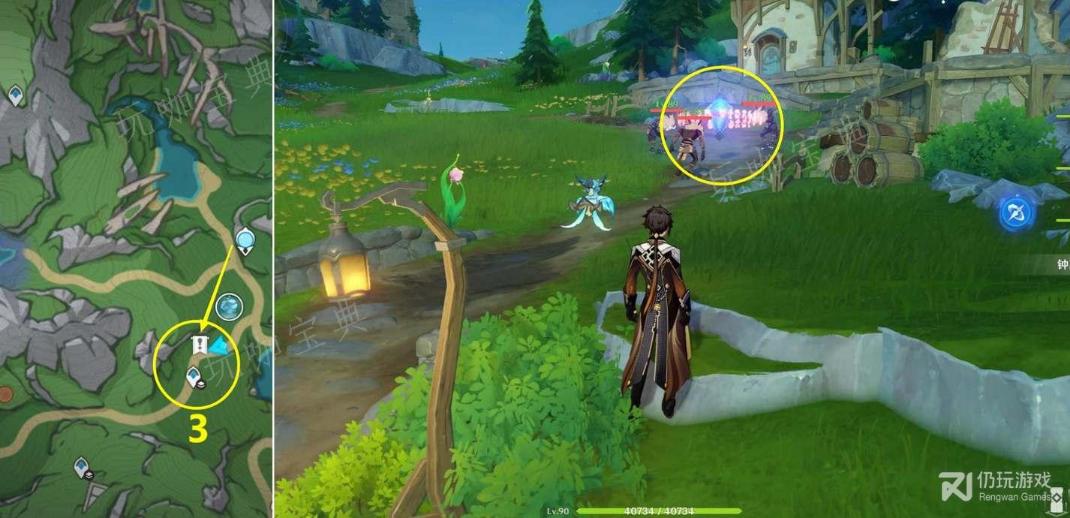 4、第3处在苍晶区七天神像,击败敌人解锁装置就可以开启解密任务;