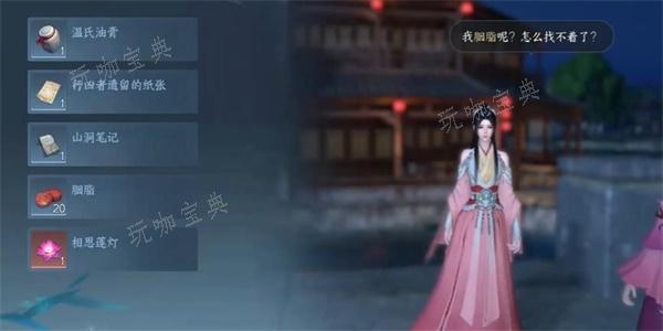 1、首先我们需要前往到桃溪村【651,1041】的位置,拾取胭脂之后,就可以解锁该传闻。