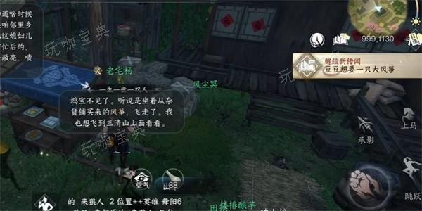 2、接着我们就根据传闻的提示,把获取到的风筝出示给豆豆之后,就可以开始与他进行对话。