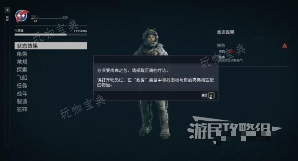 在获得新的病痛时界面上会弹出简短的提示,在角色菜单中可以手动查看详细信息。确认具体病症后,即可采取正确的疗法来治疗。