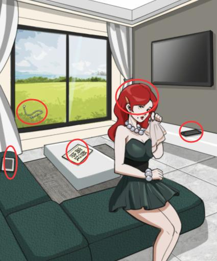 4、答案是:年轻女人的房间,数据线,枕头,红头发,拒绝