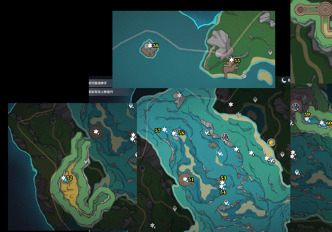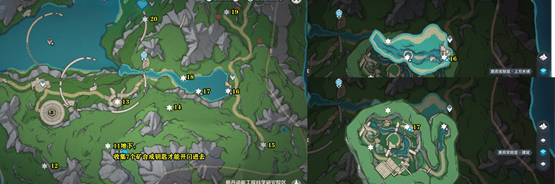 6、(51-65),这15个水神瞳分布在了5个区域,玩家可以打开地图,对照着区域板块进行区分,确定位置之后就开始进行收集。