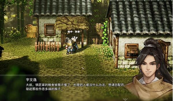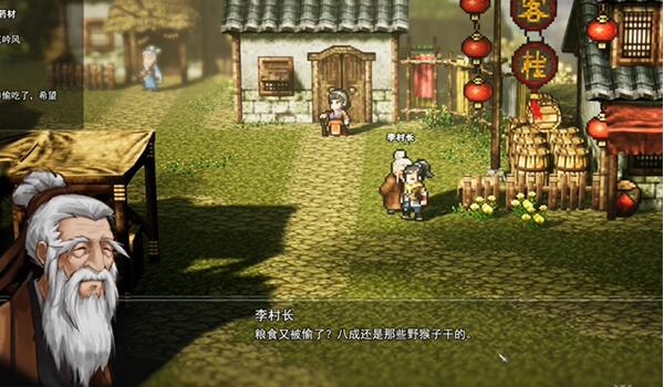 2、接着去找村长对话,村长说可以用猴药将猴子解决,然后去找郎中拿药。