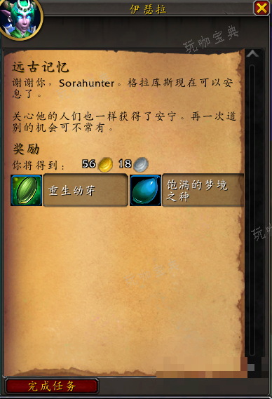 最终奖励:重生幼芽(750梦境守望者声望)、格拉库斯的虬枝(750梦境守望者声望)、饱满的梦境之种、10雏龙的酣梦纹章