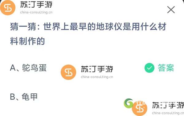 1、猜一猜:世界上最早的地球仪是用什么材料制作的?