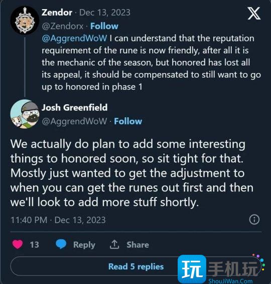 杜隆塔尔后勤部/艾泽拉斯贸易局声望符文出售要求由尊敬降低为友善后,有玩家在社交平台上表示“这个改动很好,但尊敬是不是就没意义了?”。