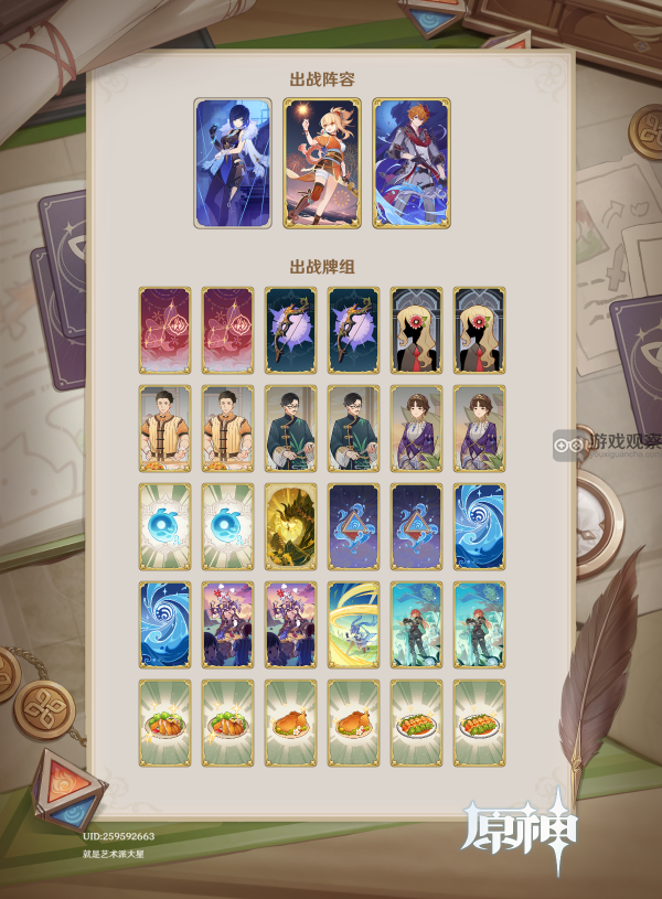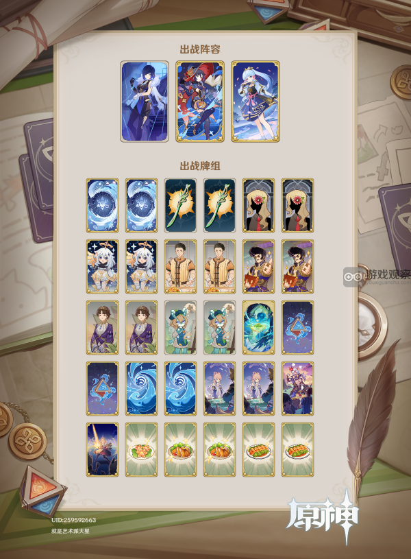 夜兰的高数值连携水伤配合绫华普通攻击,也能打出不错的效果,莫娜给予了变轴速冻的可能,还是很灵活的一套快攻卡组。