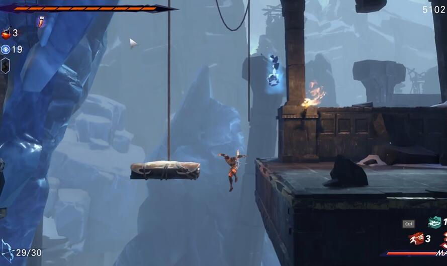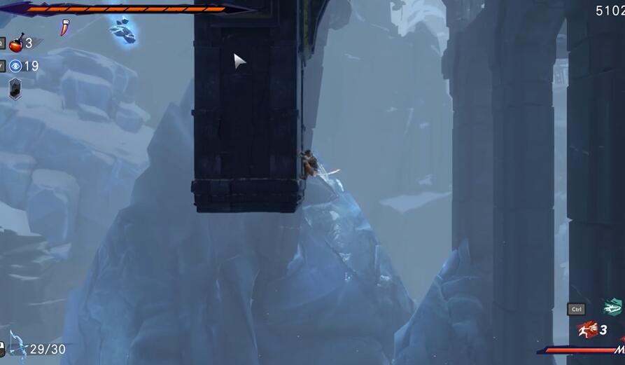 第三步:攀住岩壁,利用跳跃、冲刺技巧改变位置。