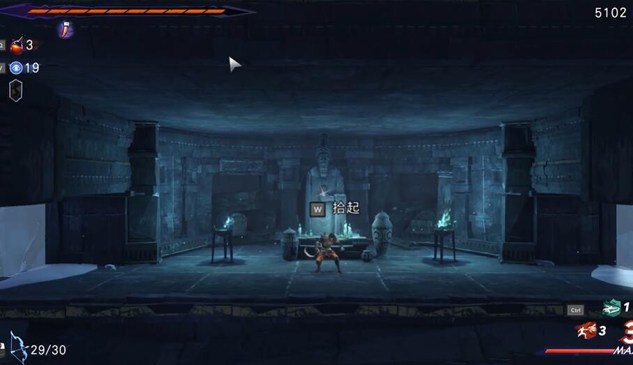 第四步:跳到右边崖壁的洞口,进去便可找到伐游神雕像。