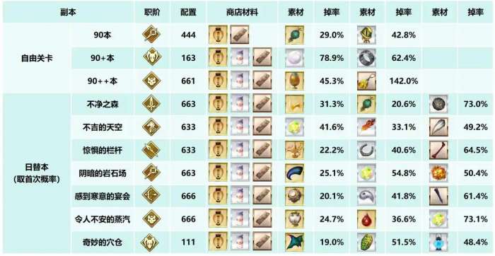 以上是本次活动的主要关卡配置和掉落情况,这次活动除了常规的自由关卡之外,每天傍晚到晚上都会有2个小时的时间开启怪异本,国服这边的时间预计是17点~23点期间,反正每天都会在地图上提示下一次的时间,大家留意一下即可。