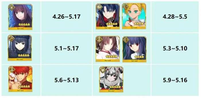 本次活动会开启4期卡池,苍崎青子卡池随活动开启,久远寺有珠预计要等到5月1日开启卡池。
