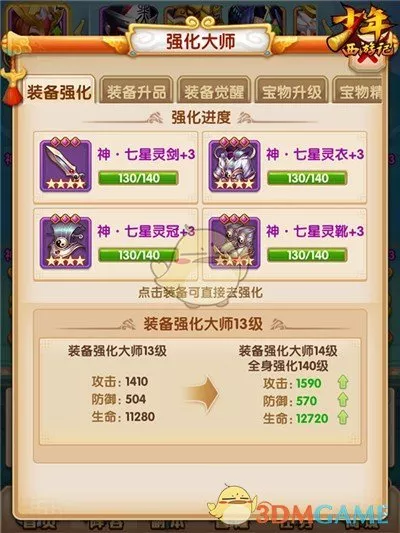 强化大师是《少年西游记》中的特色系统,全身的装备和宝物,在强化到一定顶级时,就可行激活强化大师的属性加成,同时强化大师也给强化装备提供了一个快捷的入口,有了它,强化装备更加方便。