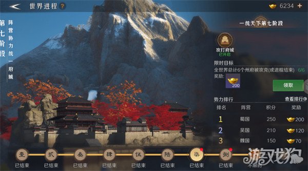 在城外地图点击右上角进入,进入到下一阶段,可以点击上一阶段领取黄金。
