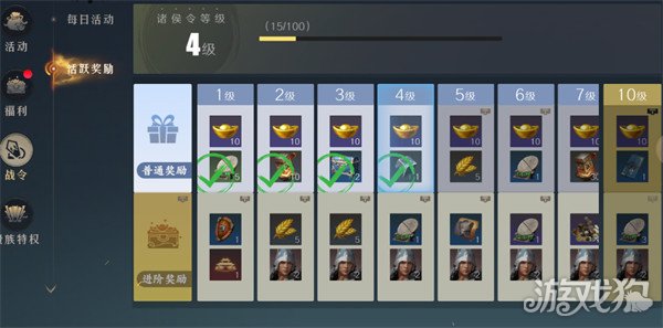右上角活动-战令-每日活动完成后,每提升1级可以到下方活跃奖励领取奖励。