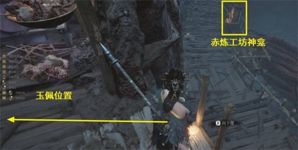 2、要是以前已经探索过此区域并开启了近路,那么直接从神龛【佛源镇 - 赤炼工坊】旁边的梯子爬上去,就能拿到这个玉佩。
