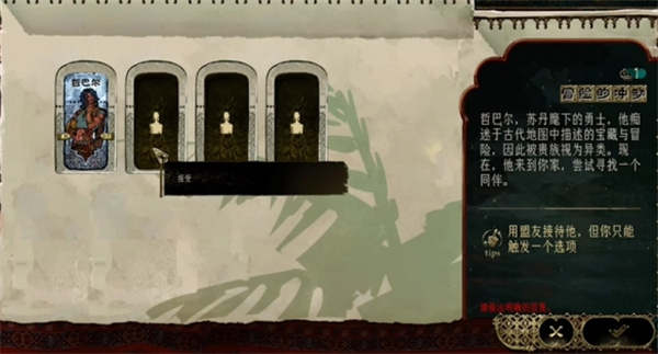 在卡牌策略角色扮演游戏苏丹的游戏中,哲巴尔是苏丹的近卫,部分玩家不知道哲巴尔应该怎么入队,下面就为大家带来苏丹的游戏中哲巴尔入队的方法介绍说明,有需要的玩家可以参考。