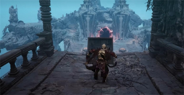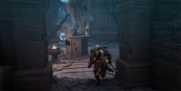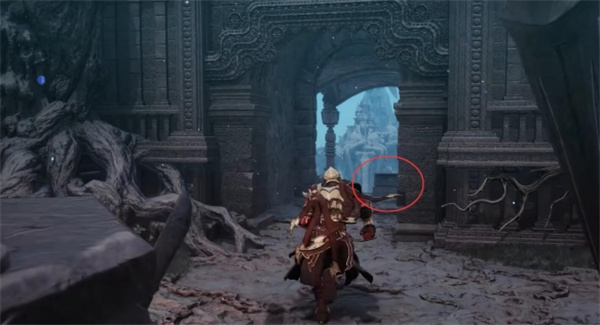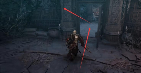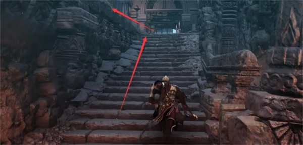 3、一直上楼梯来到尽头的雕像处往图示位置走;