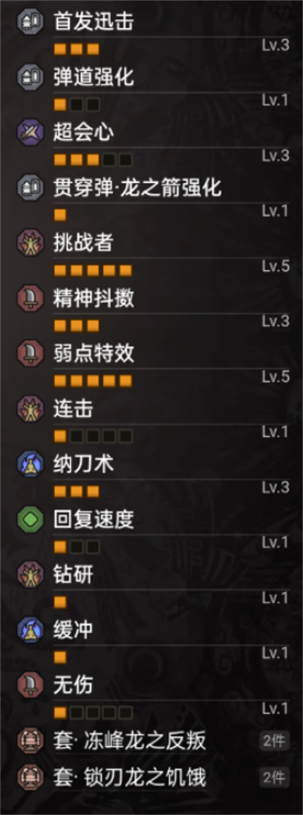 解析:这个玩法只需要全程坐在坐骑上输出,和怪物保持一定距离,武器可以少一两条会心,并且不一定需要麻痹属性,比较适合打属吸差的怪,自定义修改第一条和第二条,属性改成贯通即可。