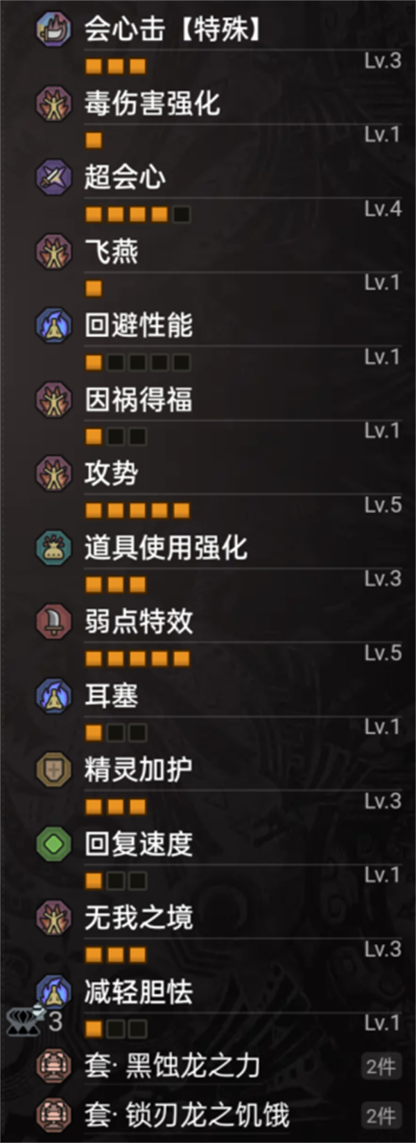 解析:毒棍搭配攻势珠可以保证攻击和会心,可以让敌人保持在中毒状态中进行输出,总的来说非常的不错。
