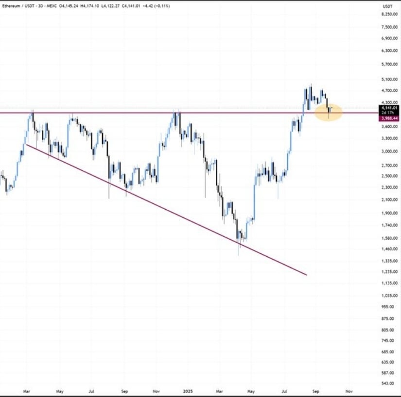 以太坊正展现出与2021年暴涨行情相似的强势动能。4000美元转为支撑位,叠加网络采用率提升和机构资金流入,表明ETH冲击1万美元目标的路径已然清晰——即便市场波动持续。