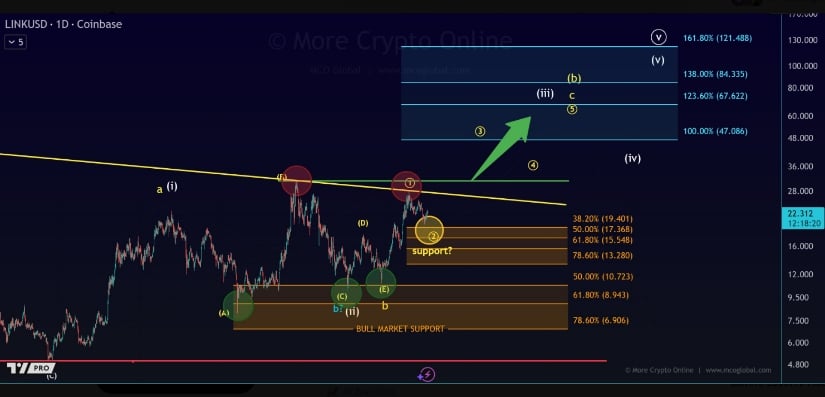根据More Crypto Online的分析,Chainlink持续运行于市场上最稳定的宏观结构之一。该代币多次在黄色趋势线阻力位折返,每当价格触及该阻力便回调。与此同时,资产始终维持在牛市区间内获得支撑,在关键位展现出韧性。这种阻力与支撑的持续博弈,构成了当前长期看涨格局的基础。