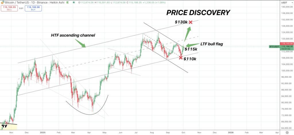 分析师Satoshi Flipper指出,BTC似乎已在115,000美元上方构筑基础,并保持更高时间框架的看涨结构,长期突破目标看向13万美元附近。