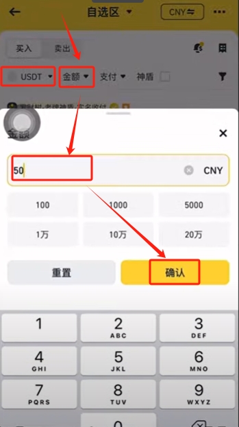 输入你想要购买的金额,比如我想购买500块的USDT。输入500,点击【确认】。
