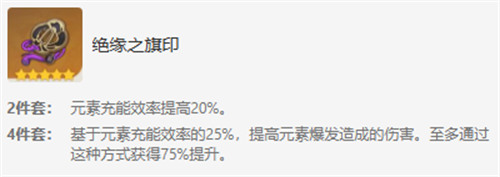 四件套效果:基于元素充能效率的25%,提高元素爆发造成的伤害。至多通过这种方式获得75%提升。