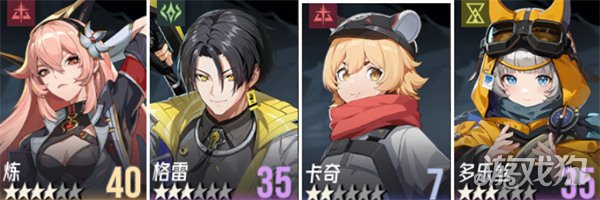 这里为大家带来的游戏各个单位都是不太一样的搭配,首先给大家做带来一个新手比较适合使用的低配版配队效果,这里的话,使用的是格雷+卡奇+多乐丝+炼这4个角色,目前这4个角色都是新手时期可以直接获取的,都是新手赠送可以拿到的角色,而且其中的炼和格雷就是主要的输出角色,这两个也是一多玩家在新手时期会优先选择使用的角色,卡奇的话,在游戏中本身具有拉掉的能力,所以在这里放在辅助位置上用。