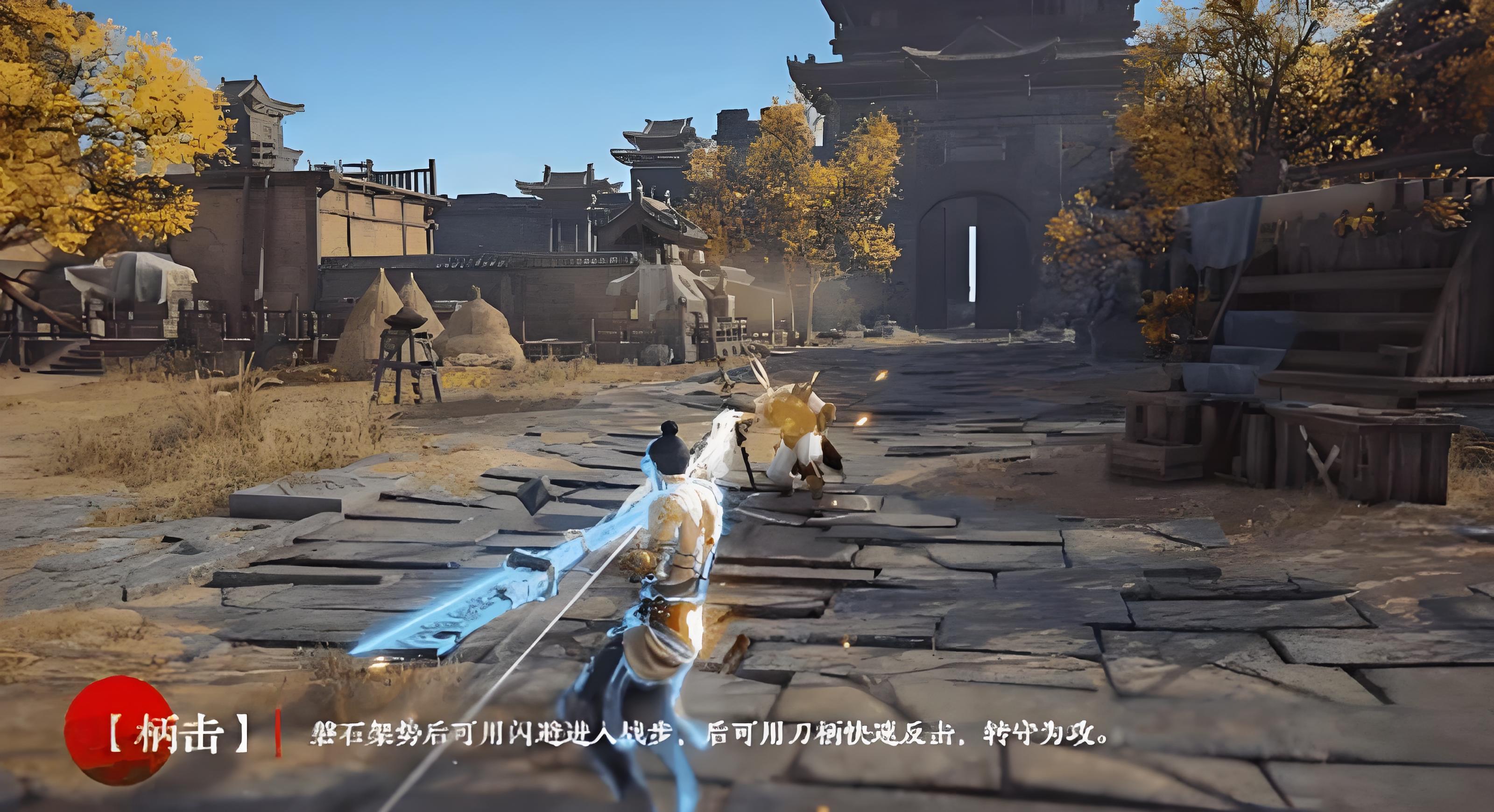 2、衍生招式柄击从磐石架势直接衍生,闪避进入战步状态后用刀柄快速反击,实现从防守到进攻的顺畅过渡衔接。