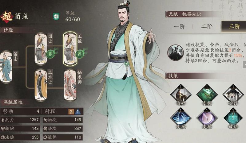 3、荀彧是前期必练治疗辅助,当世子房技能给队友加法攻50%护盾还增战意,四命后解锁群体减伤增强容错率。