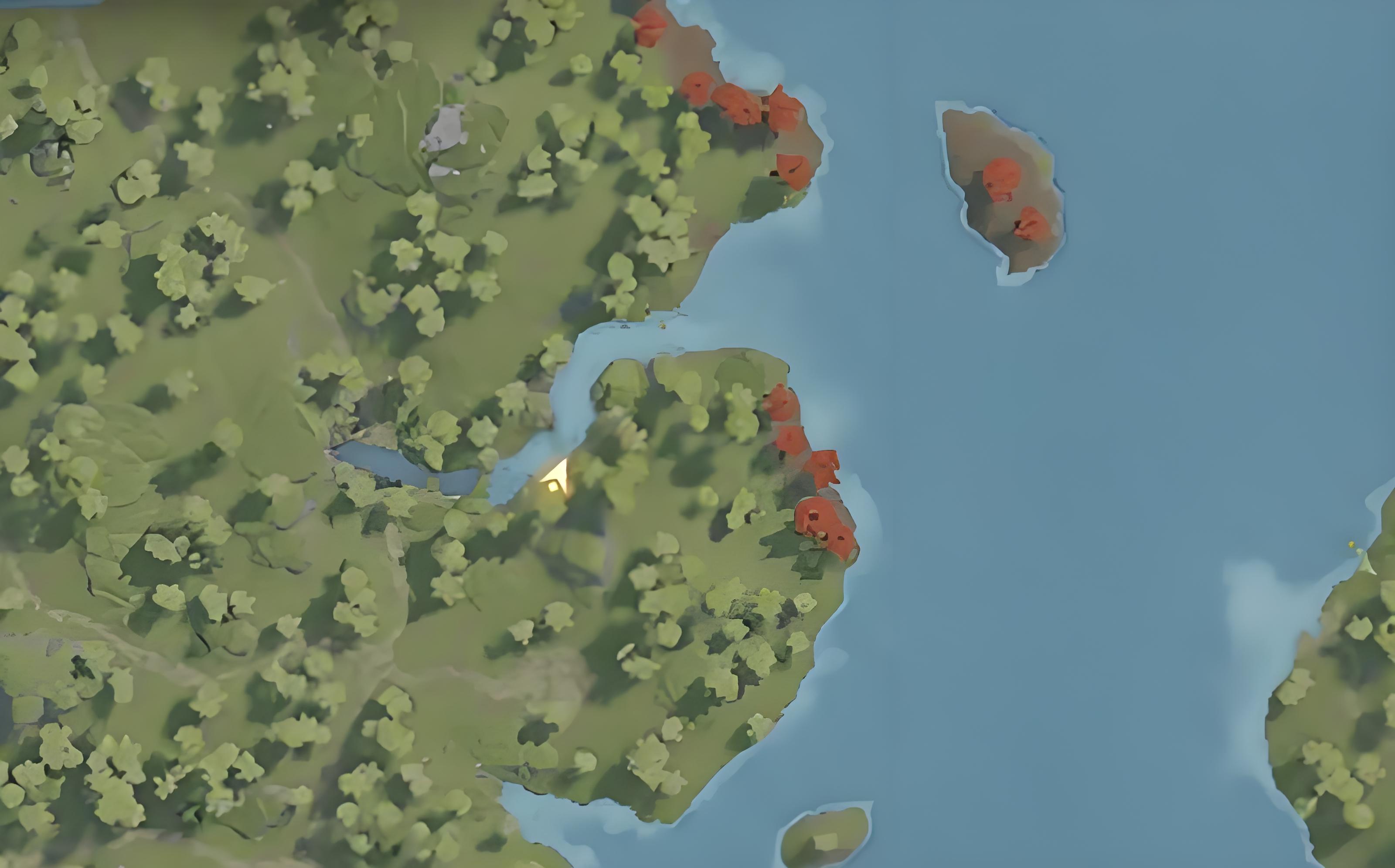 1、漂流瓶宝箱位于沃维森林南岸小河中段的小岛屿上,岛屿周围生长红树林,玩家只需与漂流瓶互动就能收集,是早期易遗漏但奖励不错的隐藏点。