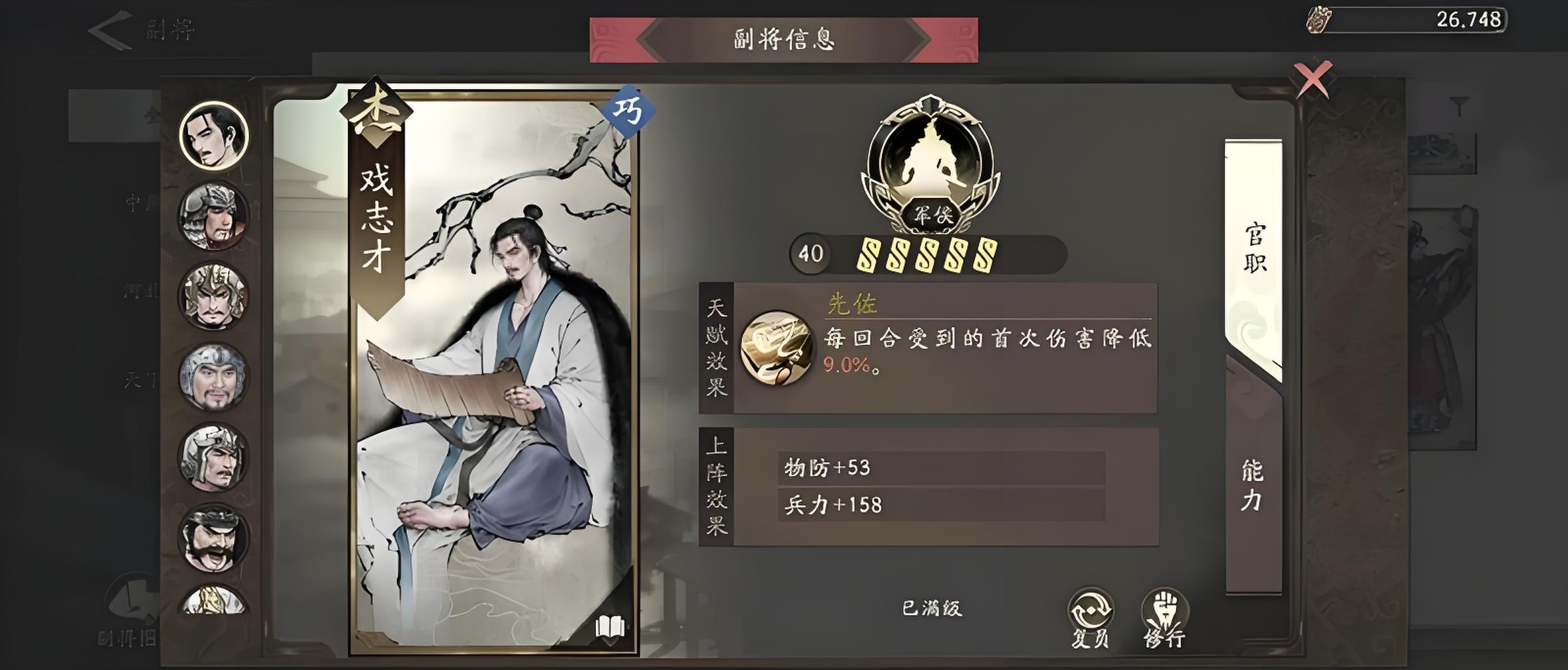 三国望神州的戏志才是兼具输出与辅助能力的热门角色,其核心玩法围绕血量控制触发残血增益展开,合理搭配战法与阵容能大幅提升队伍战力,不少玩家对其操作细节和培养方向存在困惑。接下来将从机制运用、战法选择、阵容组合及培养重点等方面展开,帮助玩家全面掌握戏志才的使用技巧。