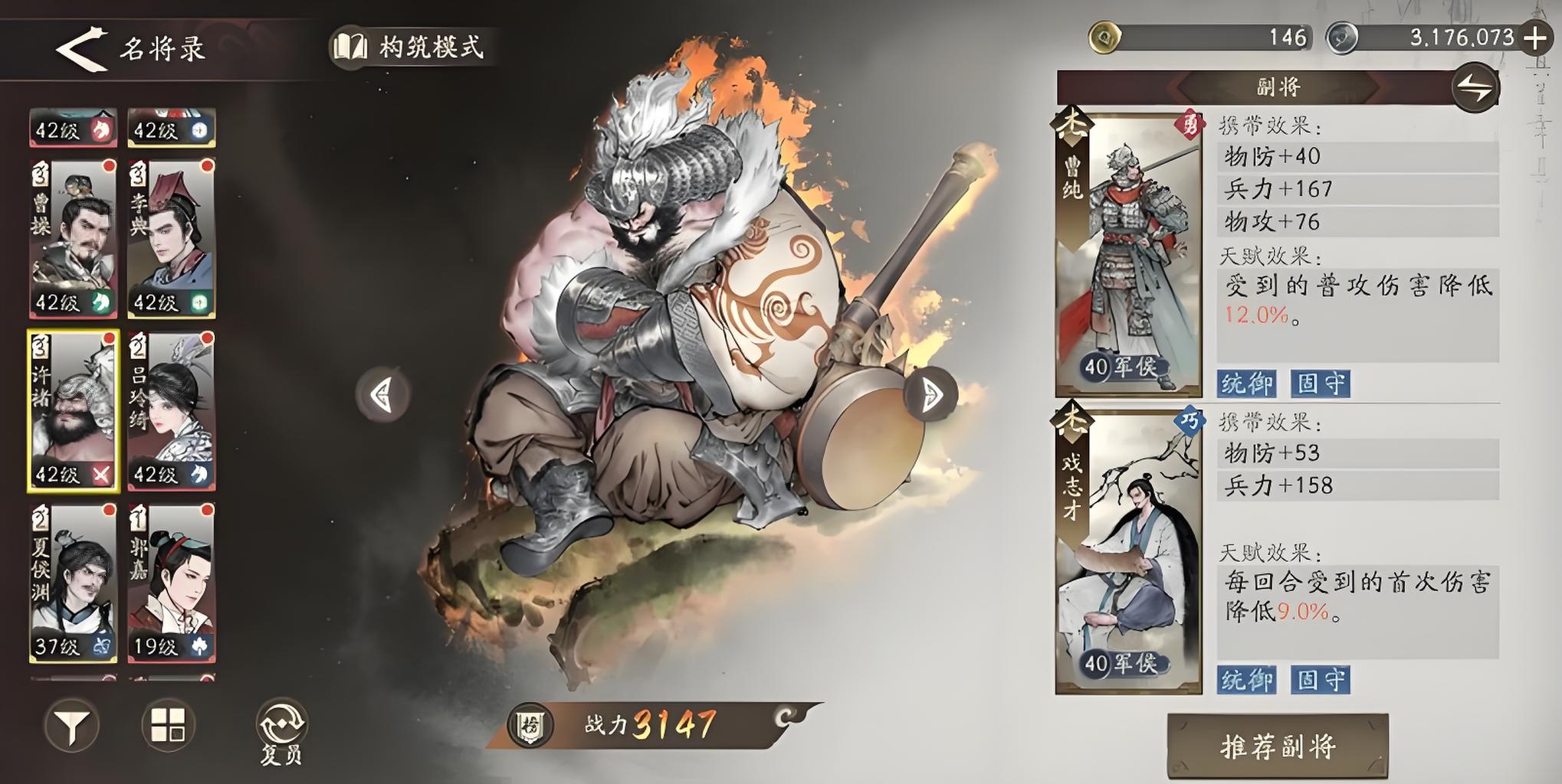 3、阵容推荐魏国谋士队郭嘉为主将配戏志才贾诩,郭嘉减血触发增伤贾诩禁疗,反击流许褚为主将配戏志才韩遂,卖血后许褚双倍反击韩遂补伤。