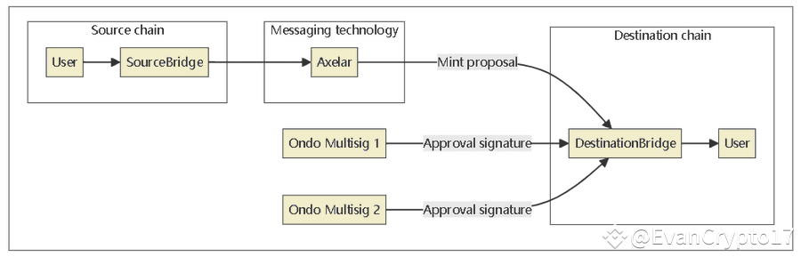 此批准机制的目标是避免完全信任 bridge 或 issuer。要求 Ondo 签字可确保资金安全,即使在桥接技术完全安全失败的情况下也是如此。