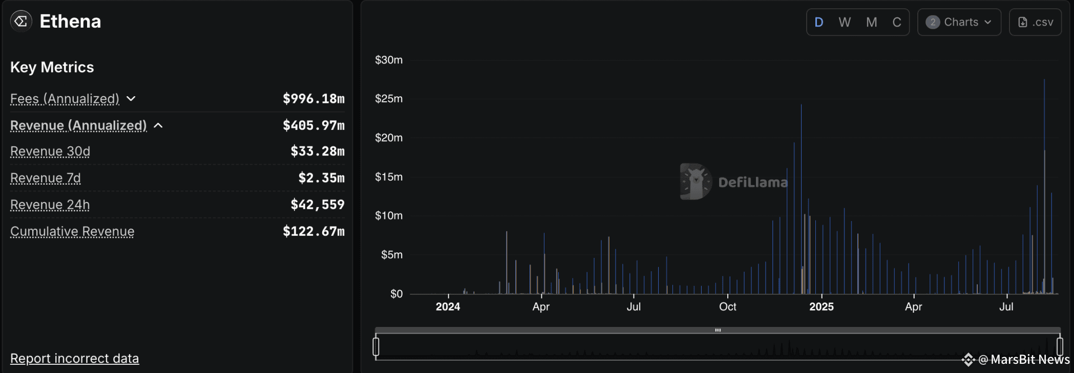 Ethena 年化收入约 4 亿美元,数据:DeFiLlama