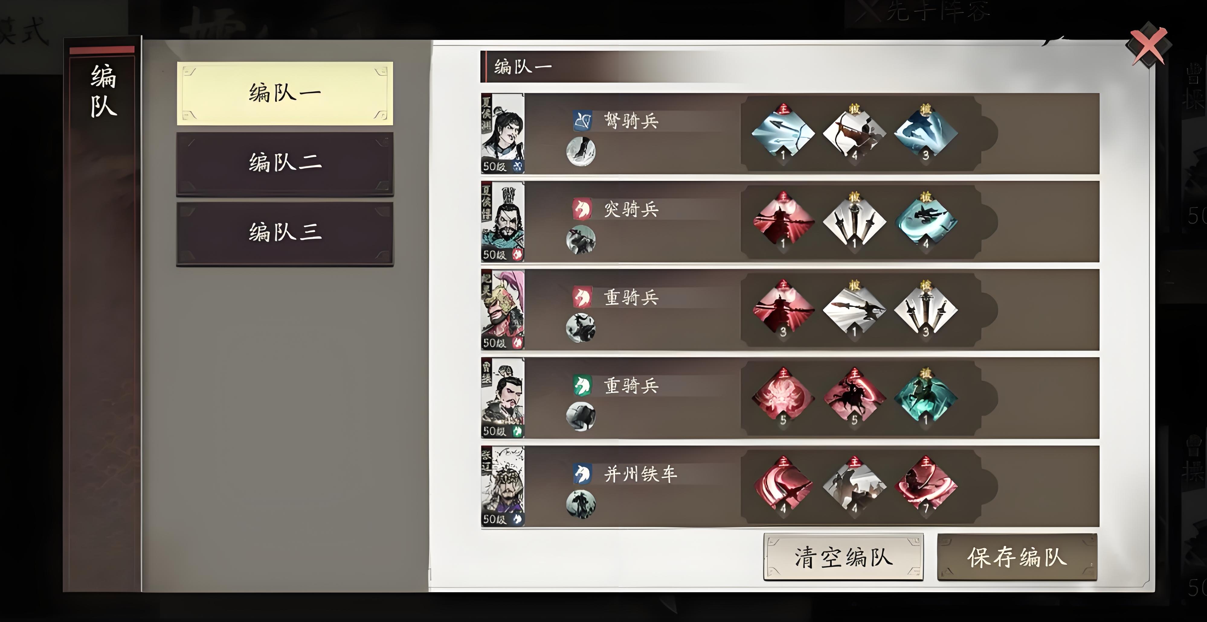 2、平民骑兵队推荐纪灵当主将,战法选击其惰归加御敌屏障,副将搭配张辽与华雄,张辽负责爆发,武锋阵减伤结合纪灵控制对抗主流队伍。