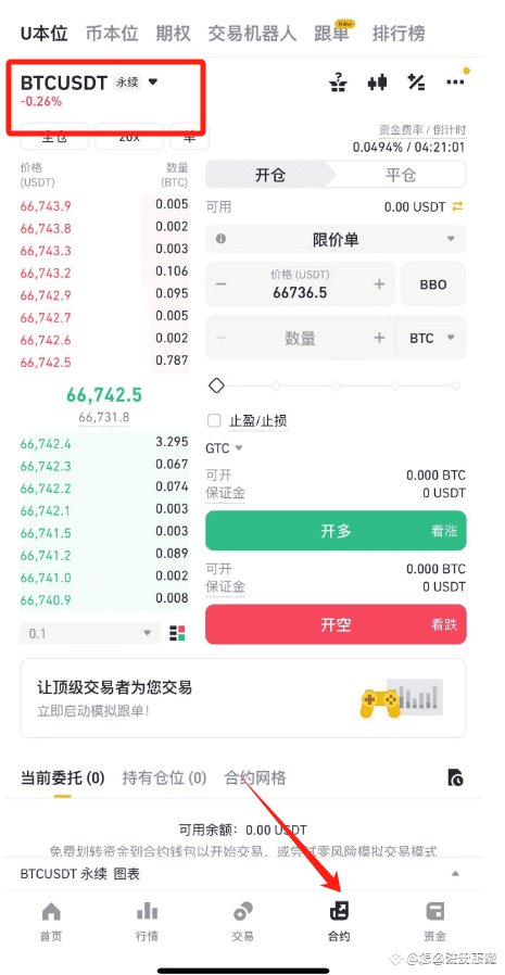 1.打开合约交易页面去交易