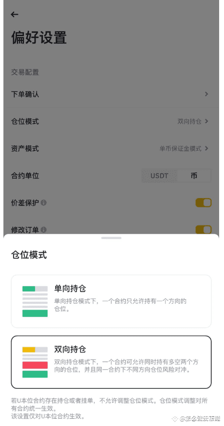 如果首次进入,建议选择一下偏好设置,在交易页面右上角三个点,点击选择偏好设置,切换成双向持仓,如果是单向持仓,就不可以多空双向持仓了。
