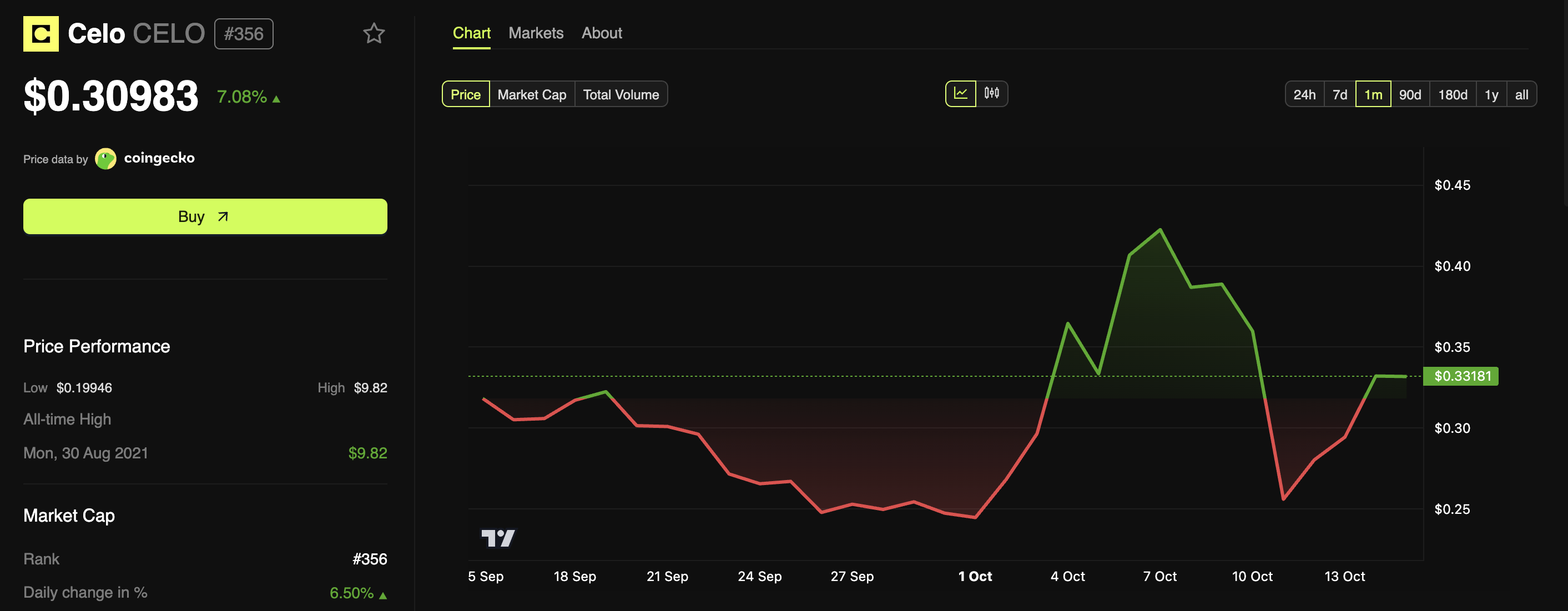受益于隐私币热潮,CELO已涨至0.30美元,单日涨幅7.08%。