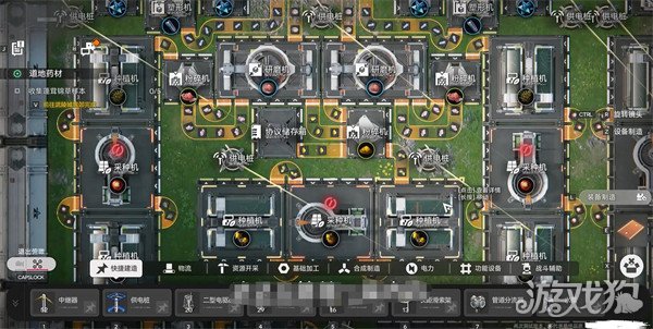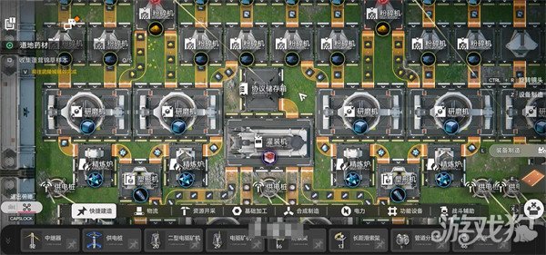 其实工厂由协议核心、生产线模块及电力系统这三大部分来组成的,其中的协议核心是中枢设施,黄色范围为供电区域,这个区域内能够建造精炼炉、粉碎机等设备。我们在最开始的时候解锁蓝图后,优先建造两条基础产线。首先就是推荐大家紫金矿→精炼炉→塑型机→灌装机(生产零件),种植机→粉碎机→罐装机(生产药品)。传送带的话其实是非常复杂的,这里就只介绍一下入门玩法就不太细说。但是基础上还是树形分布,有干线有分支,干线走原材料,越到后面的工序就越支线。主线带宽大于支线这样会避免材料堵路,精炼炉输出端连接3条传送带时,每条效率降至33%,建议重要物资单独走线。
