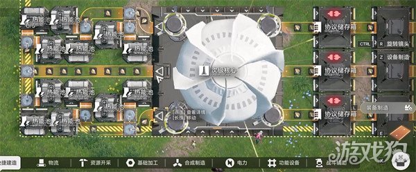 除了布置之外呢就是电力了。电力也是大家打造流水线的一个关键机制,协议核心电压较高,需用供电桩分流,中继器可扩展电力范围至150码外。初期建造2座地热发电机即可满足需求,地热发电机没有什么特殊的,唯一就是要远离腐蚀区,否则每小时损耗2%耐久。中期解锁电驱模块后,矿机效率提升非常高,但电力消耗翻倍。建议优先升级电力系统,这样的话大家中期就不会被电力卡主,回头还要重新布线非常麻烦。
