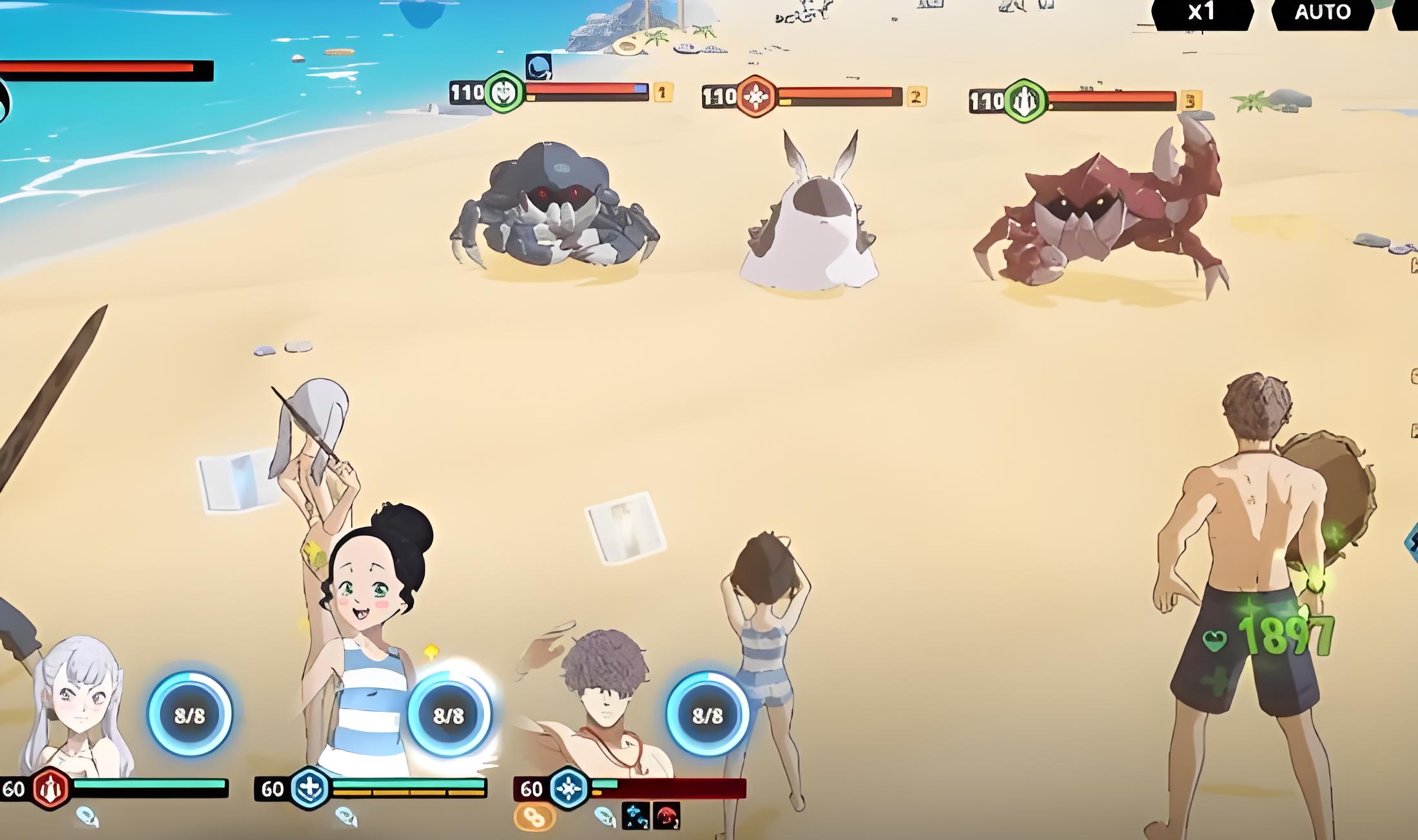 3、必杀技烤肉派对时间为所有己方角色恢复大量生命,还赋予后续数回合攻击力提升状态,兼顾治疗与输出增益能扭转局势。